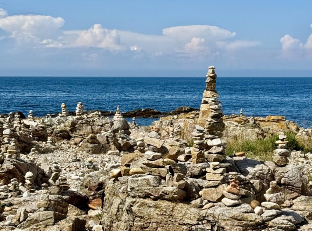 Bornholm, Denmark. Like all Overseas Adventure trips, this one included “a day in the life” at a cooperative organic farm, where we toured the fields and lunched on delicious vegetables those fields had raised. It was run by a charming young couple, whom I doubt will last very long–strenuous work for a pregnant wife. Earlier we had visited one of the round churches on the island and learned about life in previous centuries. Be sure to see how the length of sermons were measured in this Bornhelm photo album.