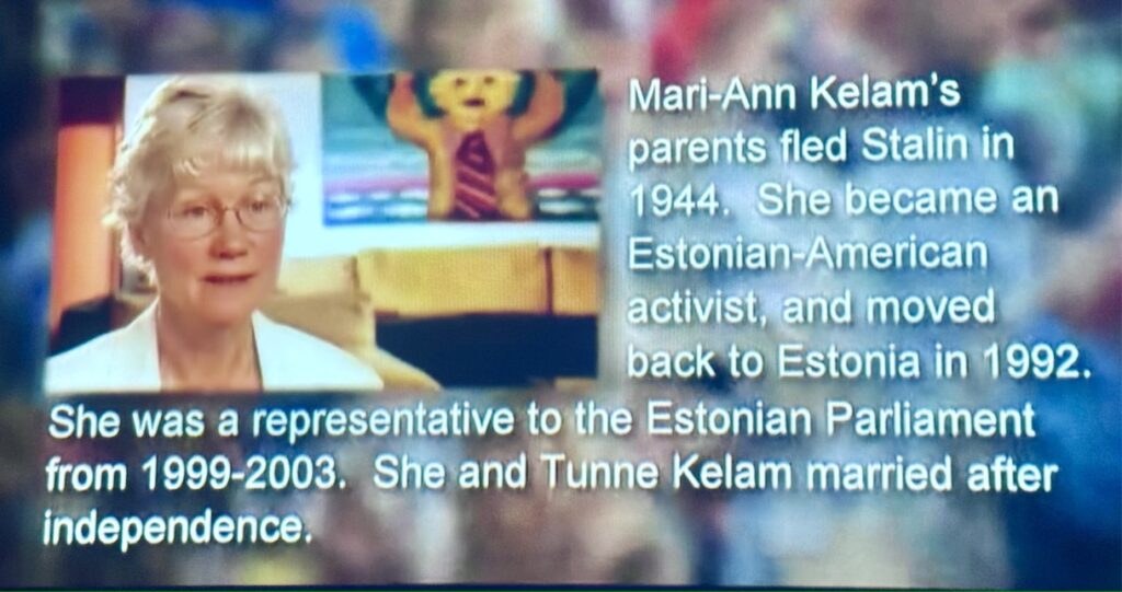 My son David has kept up with a particularly bright classmate from Estonia who was in his Kindergarten class in Arlington, Virginia. When Kristopher popped up on Facebook four decades later, I friended him and learned that his mother had moved back to Estonia and become a member of Parliament. On the ship we saw a movie about the Baltic Singing Revolution, which occurred from 1987-91. It included these photos of Mari-Ann Kelam and her husband, Tunne Kelam. What a joy to see their role in making Estonia the poster child for peaceful emergence from the Soviet era. ![]()