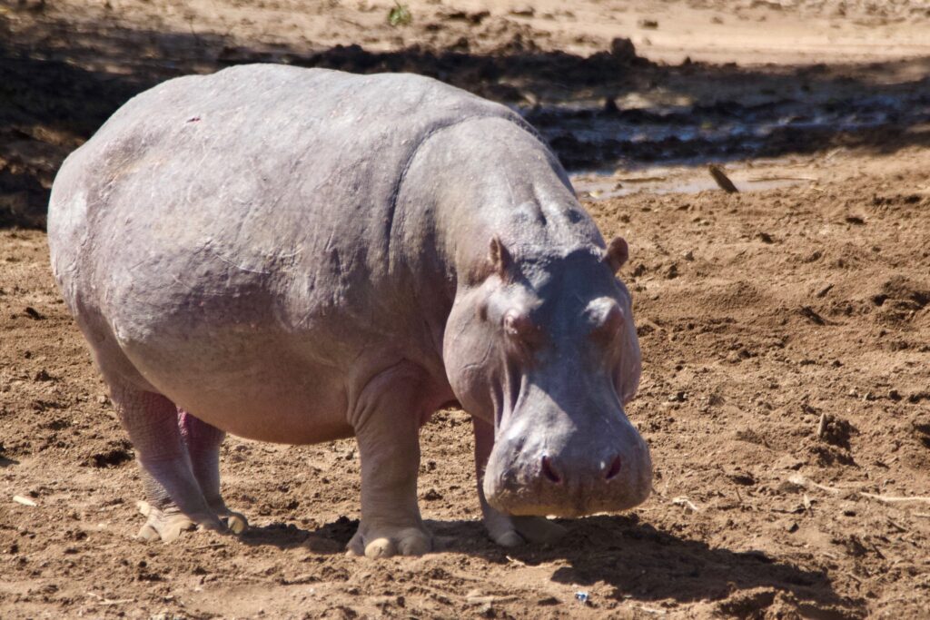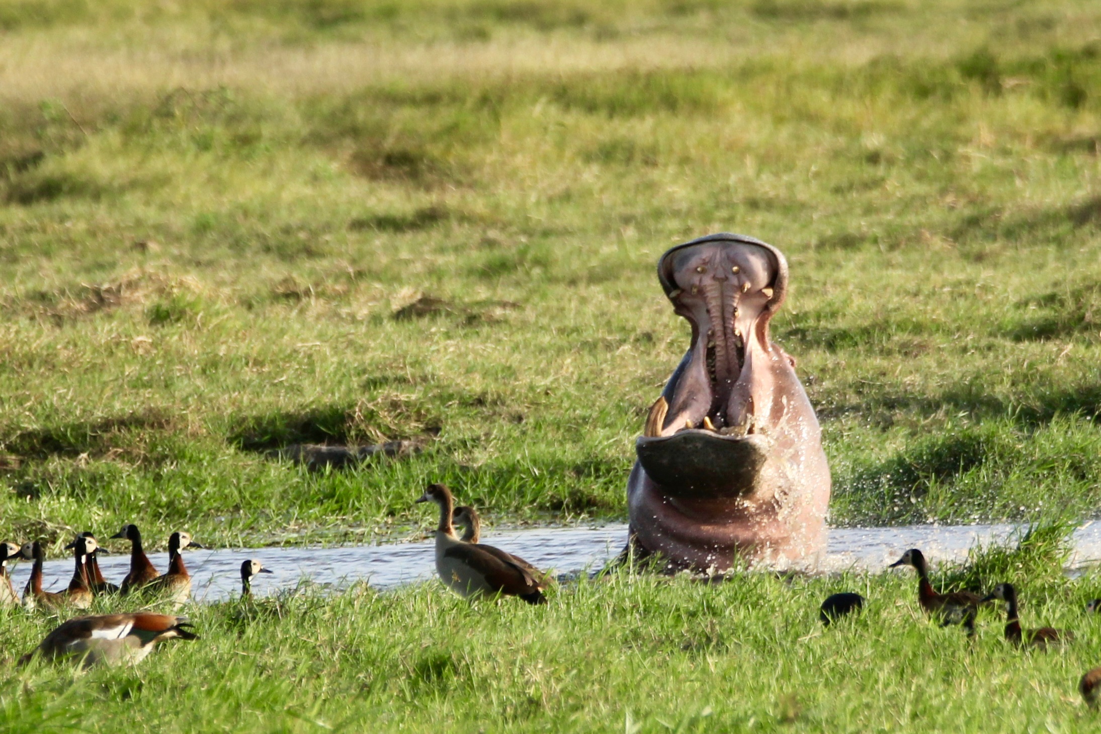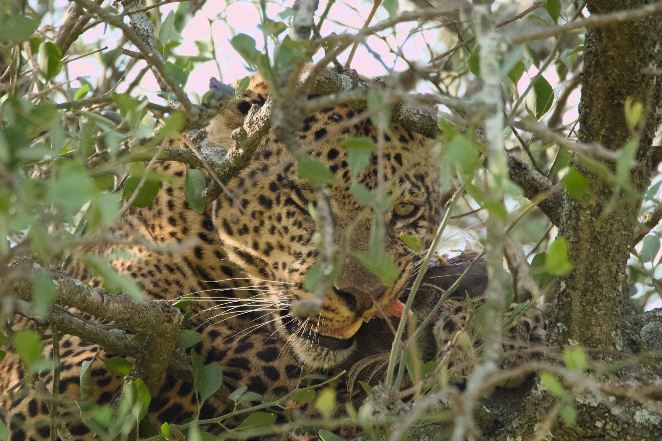 Lilli, with her rented lens, was able to get these prize pictures of the reclusive leopard and a hungry hippo: