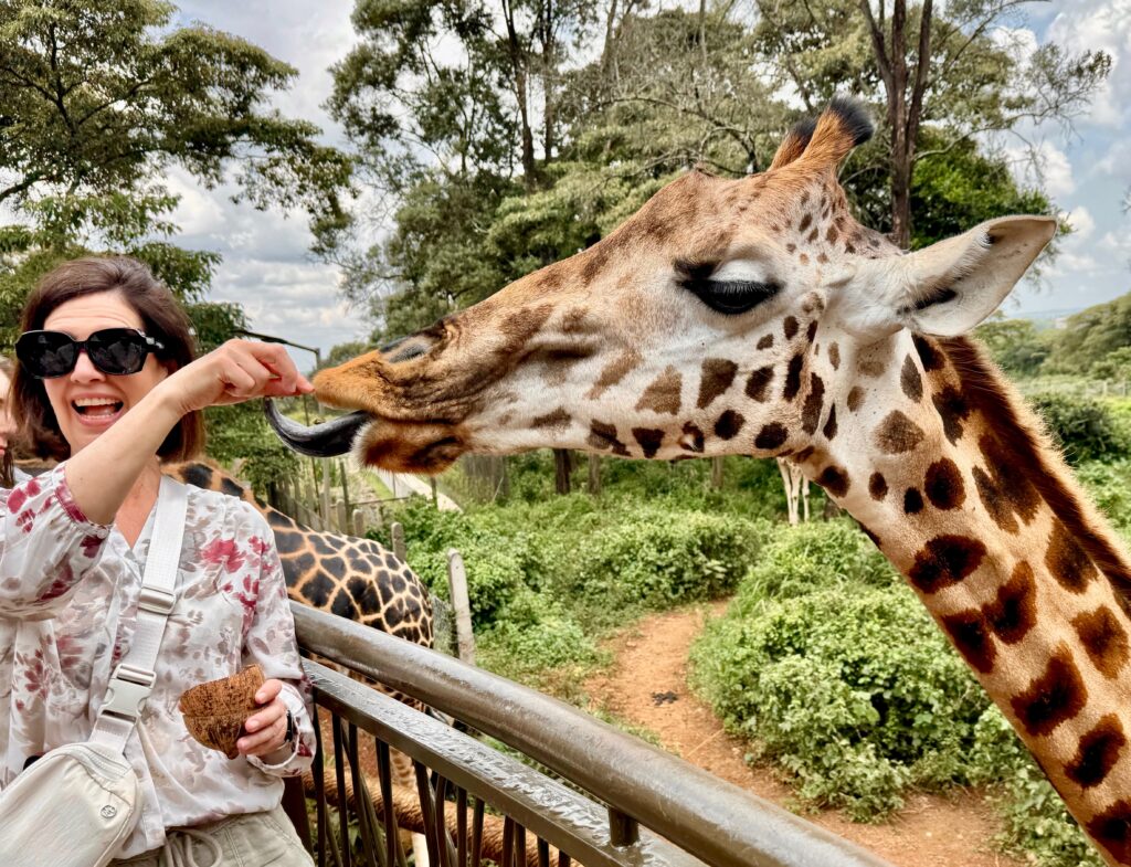 On our only day in the city of Nairobi, we were bussed to the Giraffe Centre, where we got to feed Rothschild Giraffes, and to the Sheldrick Elephant Orphanage, that allowed a one-hour viewing of the 13 lonely elephants they care for. The elephants were close enough to touch and felt grisly!